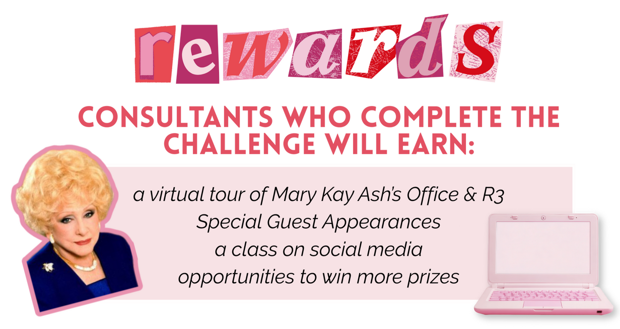 New consultants can complete previous tasks and still earn the finial prize.All Beauty Consultants receive the same tasks globally. Each square represents a task. In order to win you must PINK OUT and be active by the end of the challenge.